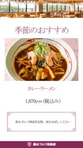 レストランのほかにスタート前売店(8時~)及びコース内売店(10時~)もございます。どうぞご利用ください。スタート前売店では簡単な朝食もご用意しております。